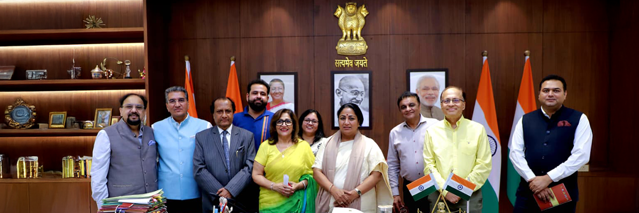 A delegation led by Mr. Surendra Kumar Jaiswal, President HRANI, comprising of MC Members Mr. Vinod Gulati, Mr. Vineet Taing, along with Mrs Renu Thapliyal, Secretary General, HRANI and Mrs Meena Bhatia, Vice President and General Manager, Le Meridien met Sh. Prahlad Singh Patel, Hon'ble Minister of State (Independent Charge), Ministry of Tourism, and Sh. Yogendra Tripathi, Secretary, Ministry of Tourism, Govt. of India on February 11, 2020.